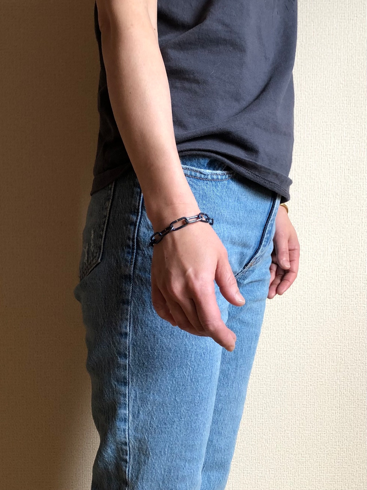 チタンを火とハンマーで製作したチェーンブレスレット。