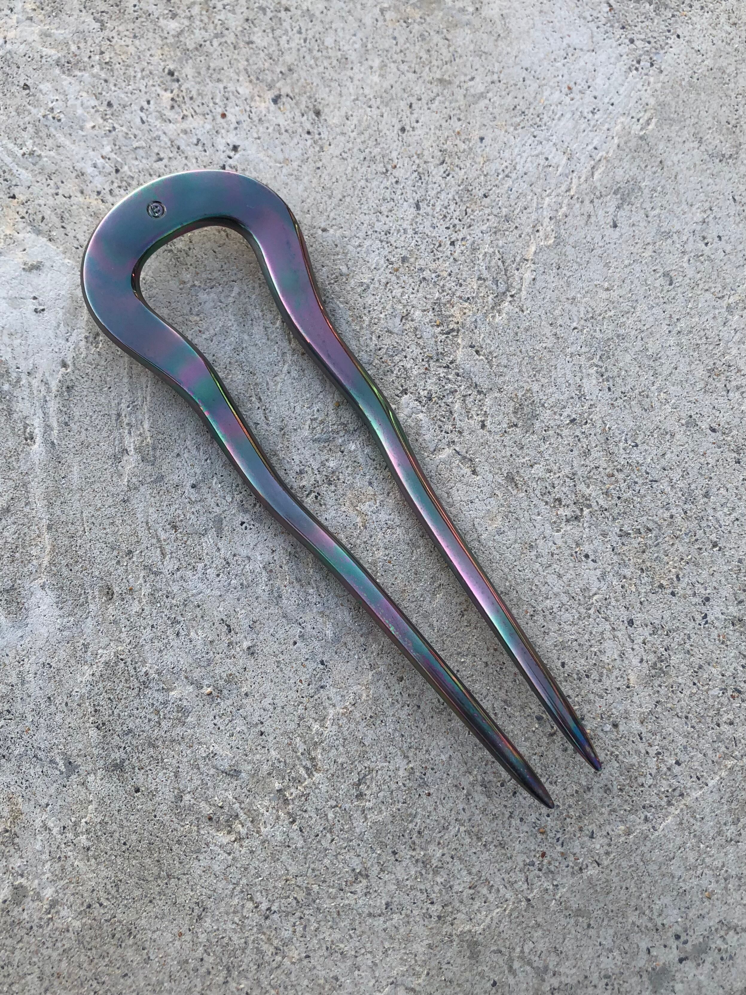昔ながらの製法、火とハンマーで製作した二本軸の簪。
