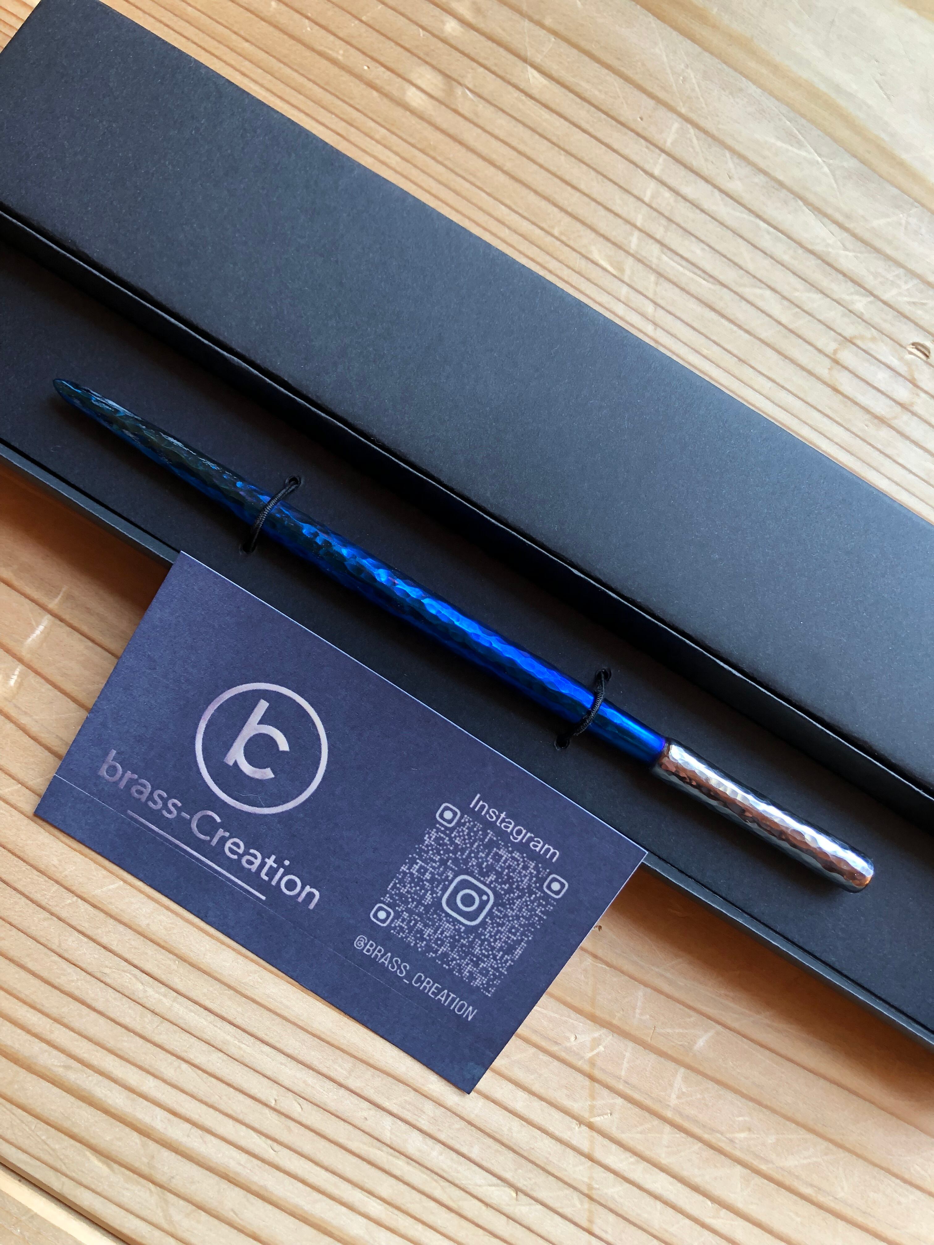 ライトセイバーやビームサーベルなど未来の武器イメージした一本挿し簪です。全体にに鎚目を入れ青を強調した作品。