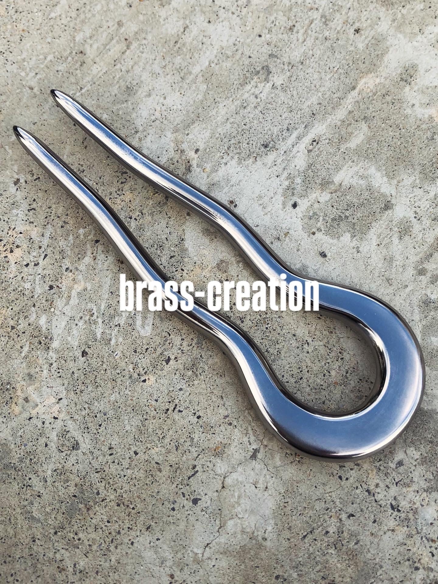チタンを火とハンマーで製作した高級二本軸のかんざし。これからの季節にピッタリのシルバーカラーのヘアアクセサリー、鍛造の痕跡、7ドットに磨きあげたシルバーが高級感あふれる作品です。純チタン製なのでとにかく軽く、暑い季節の汗によるかぶれもないのでお客様に好評です。頑丈で使いやすい作品です。