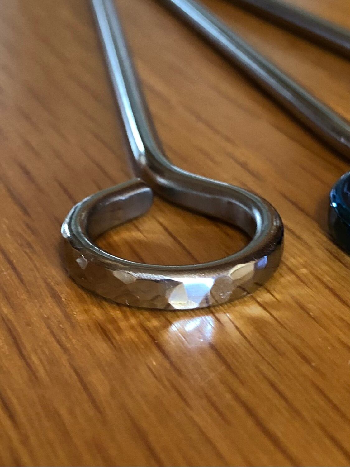 先端に鎚目で岩を表した指輪がデザインされたシンプルな細身のかんざしです。