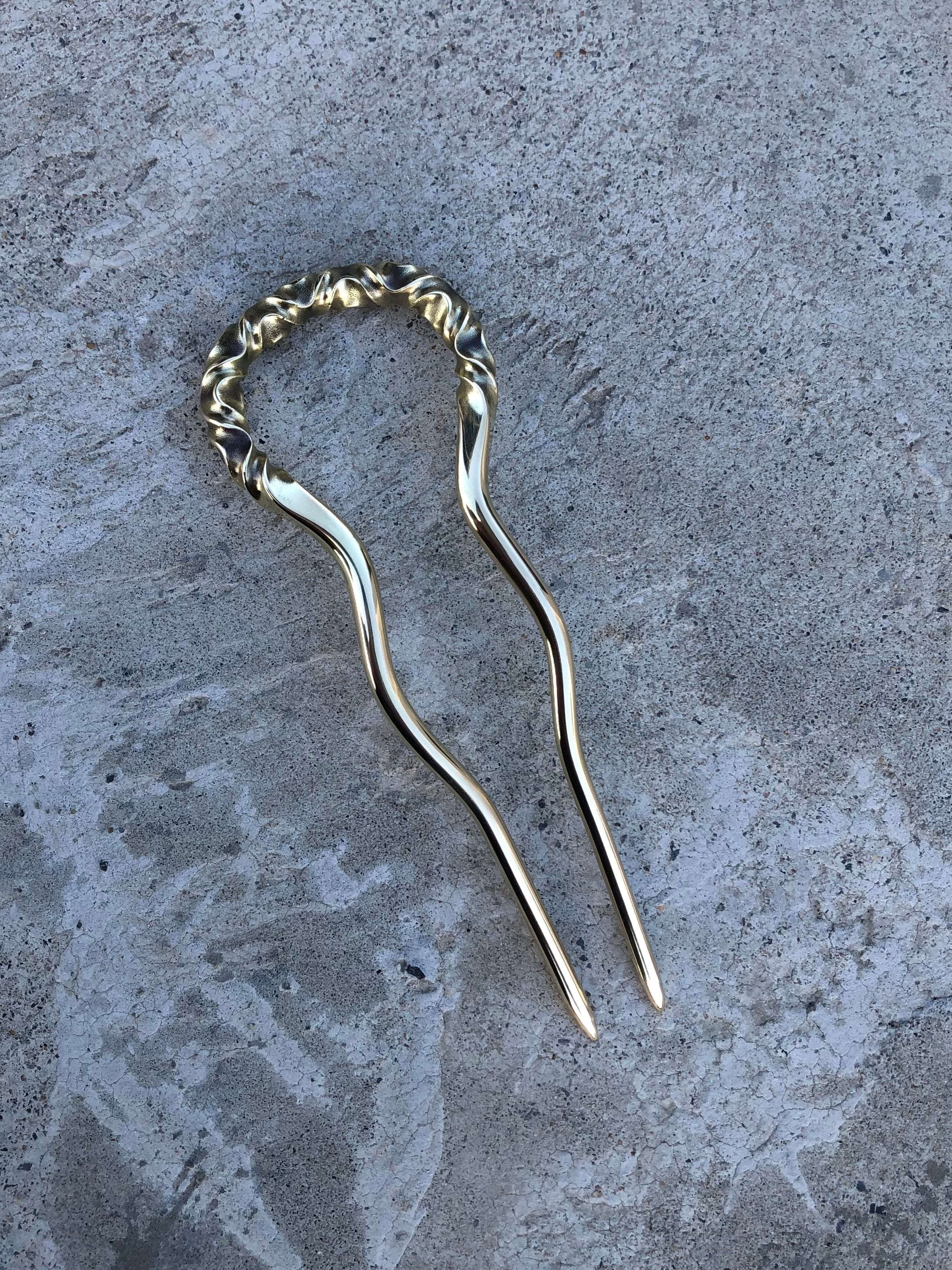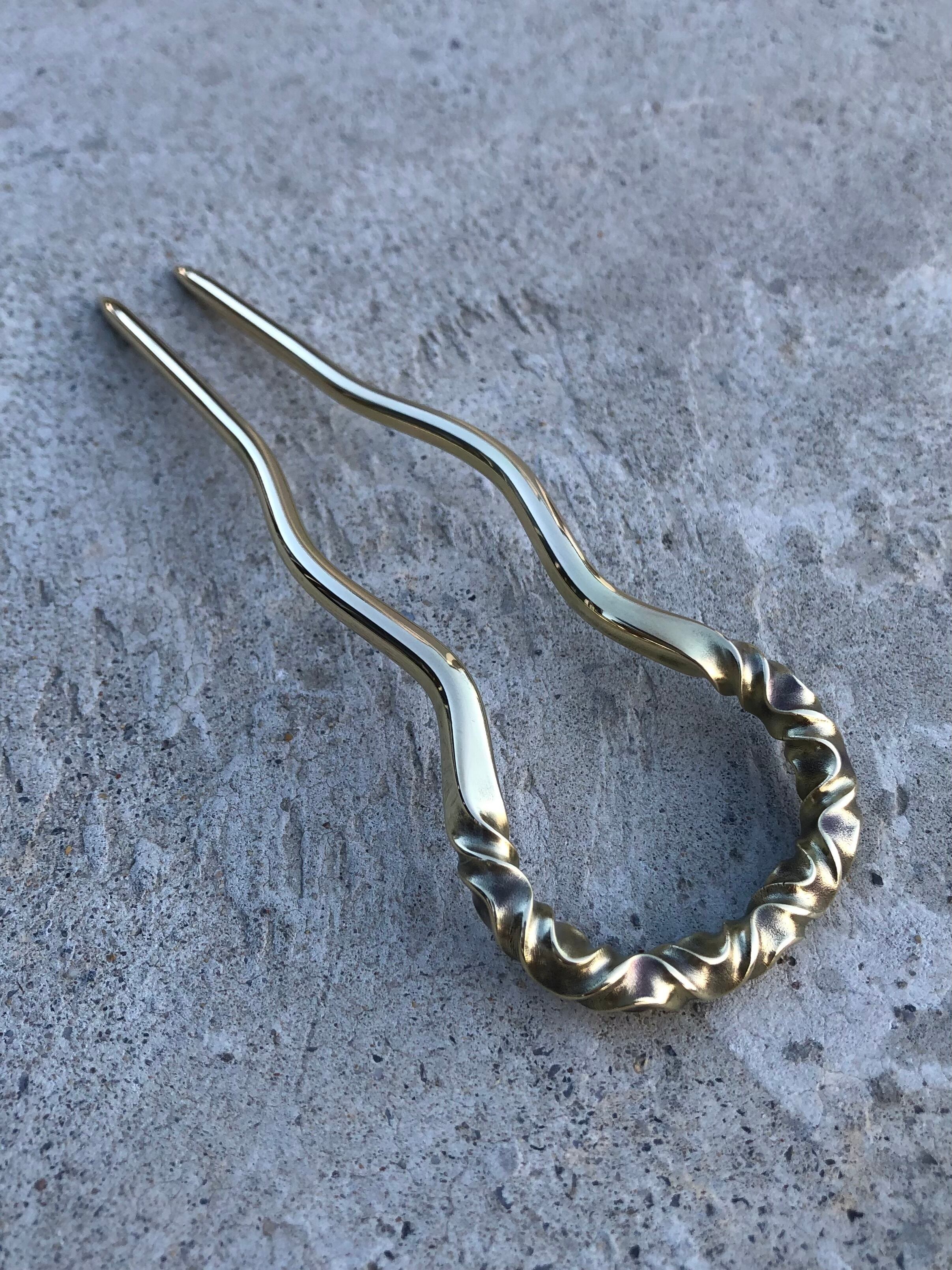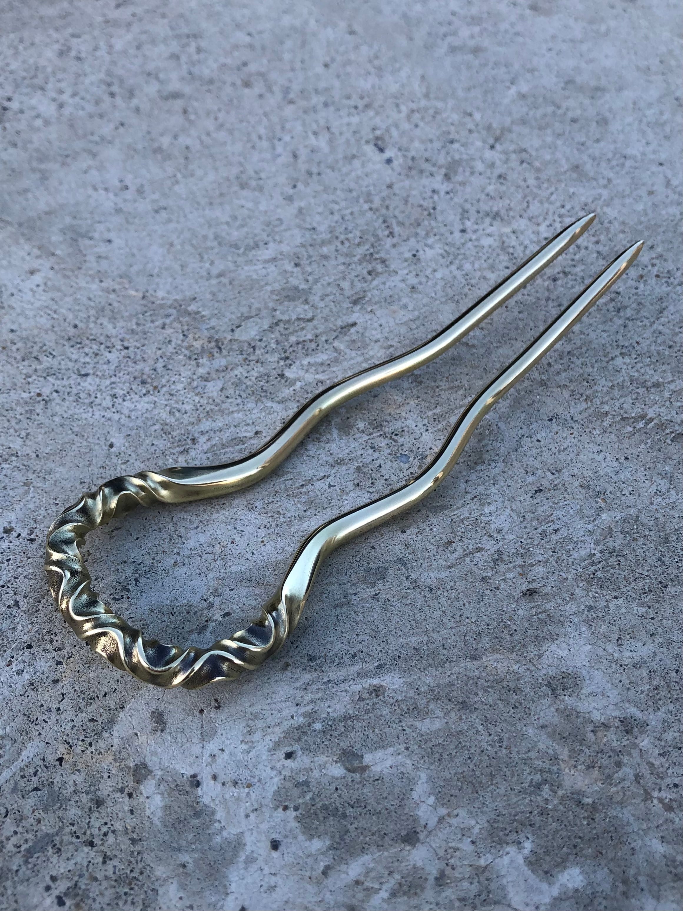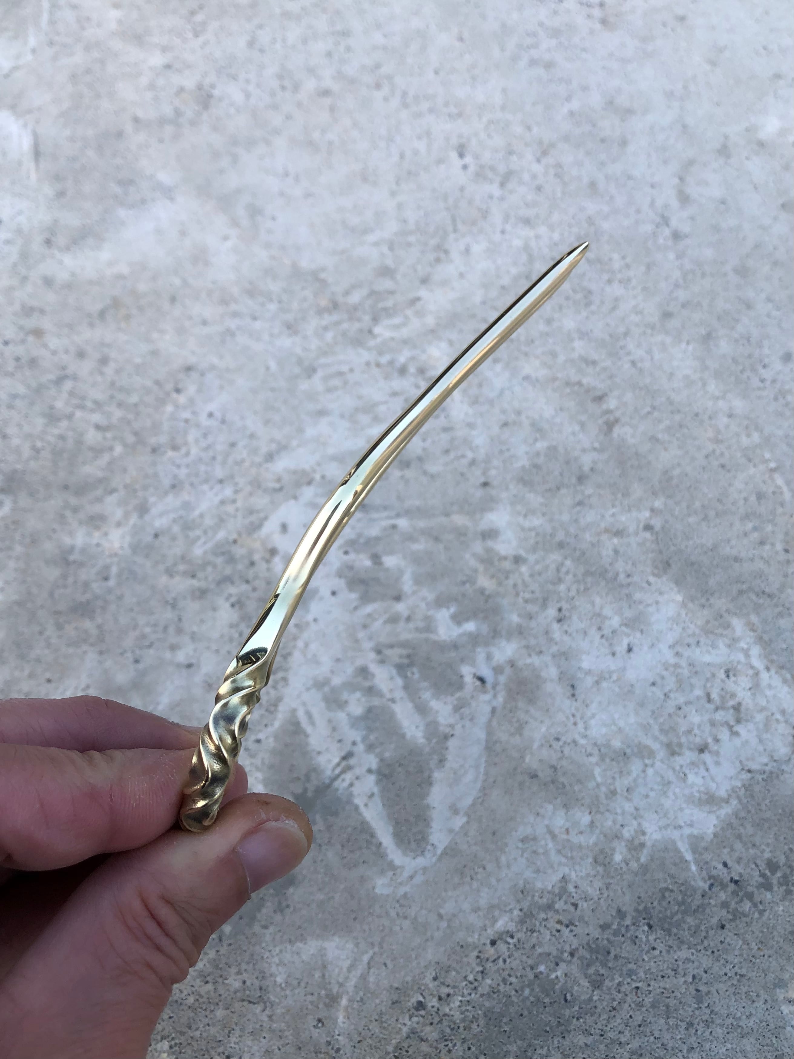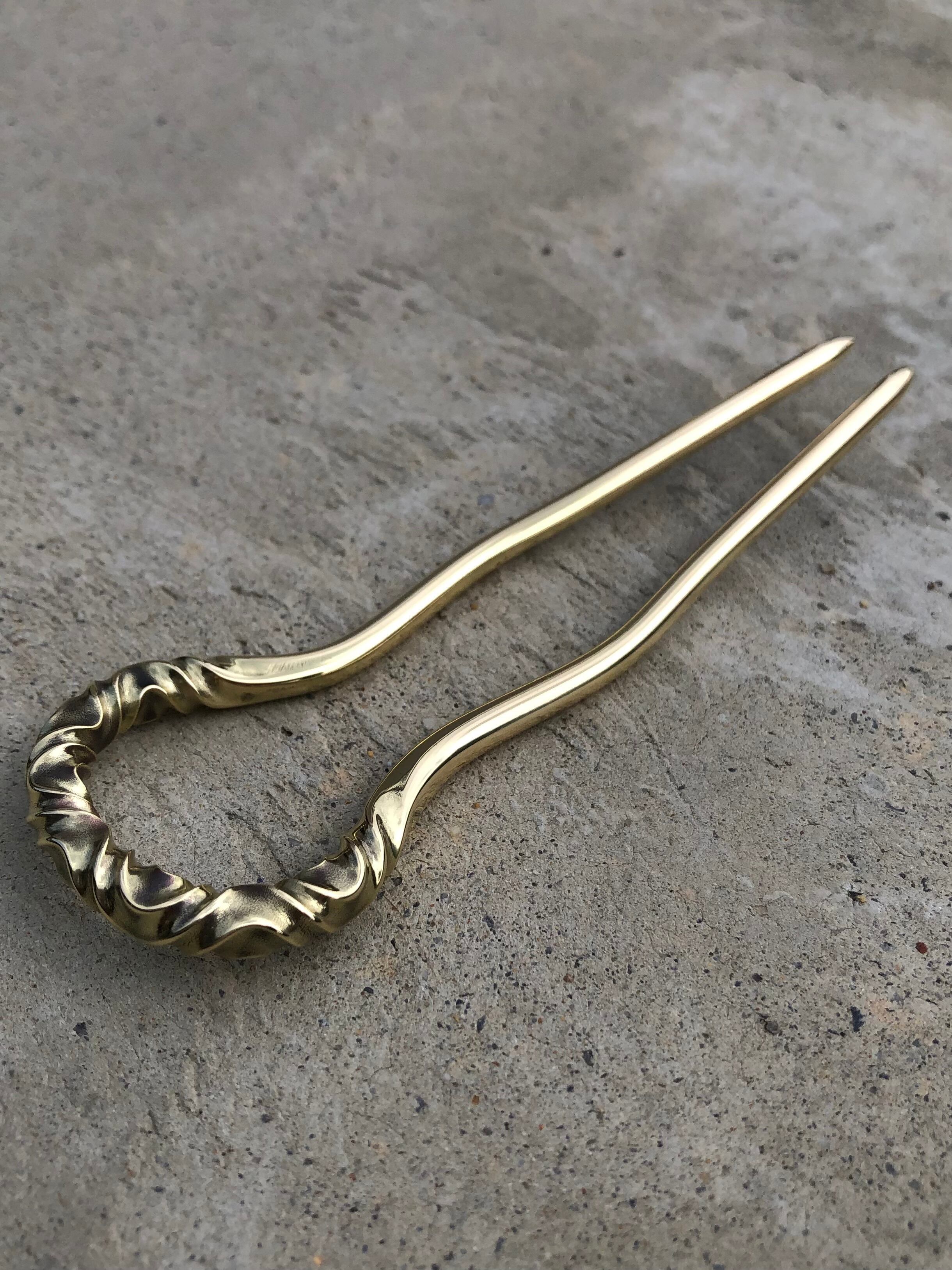 brass curved pattern hair stick large かんざし ヘアスティック ロングヘアー