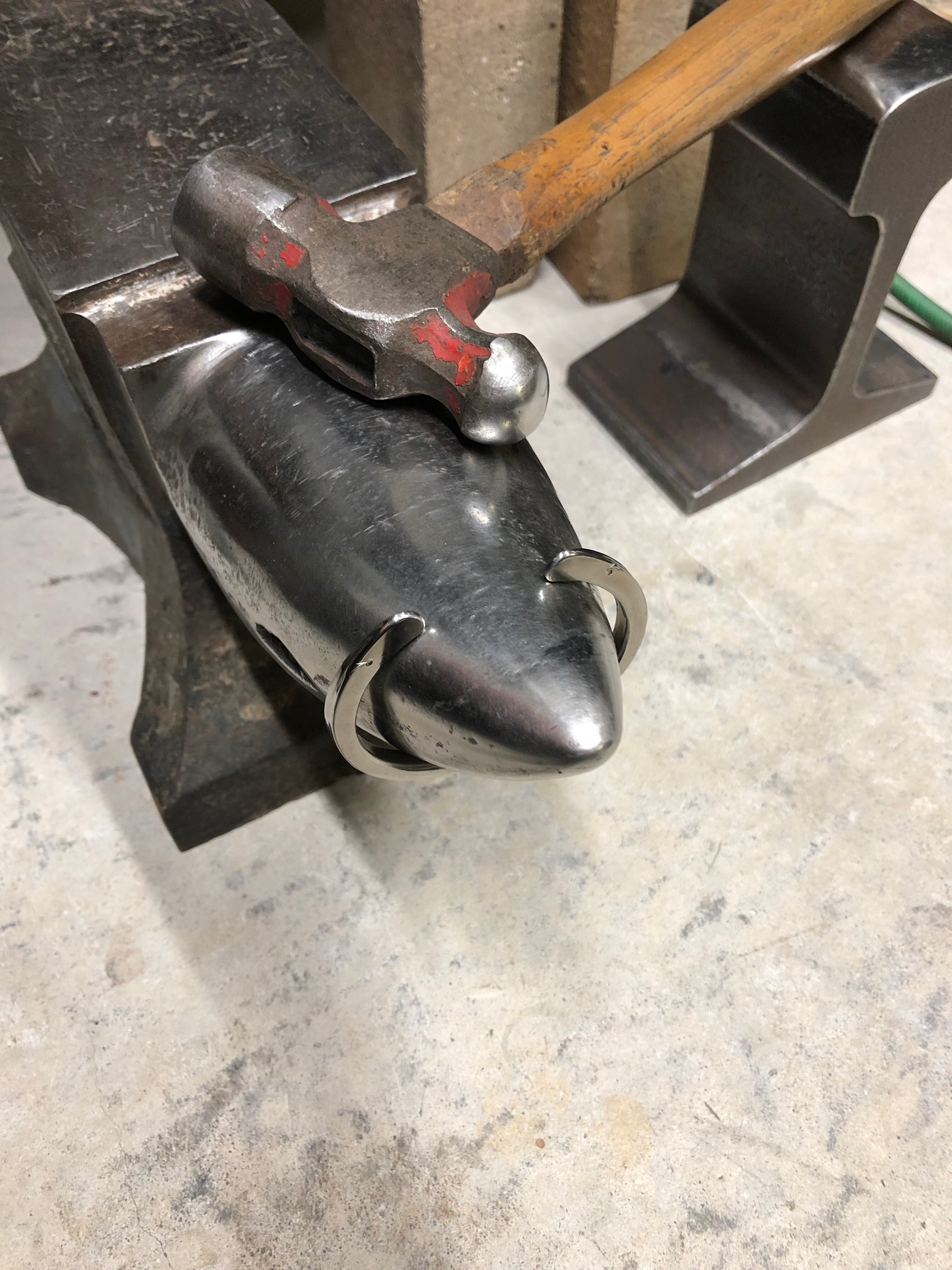 鍛造とは、ハンマーや金床、金敷、芯金などを使用し、材料を何百回と叩きながら加工する技法です。叩くことで金属の結晶を密にし、滑らかな表面と強度のある素材に仕上がります。