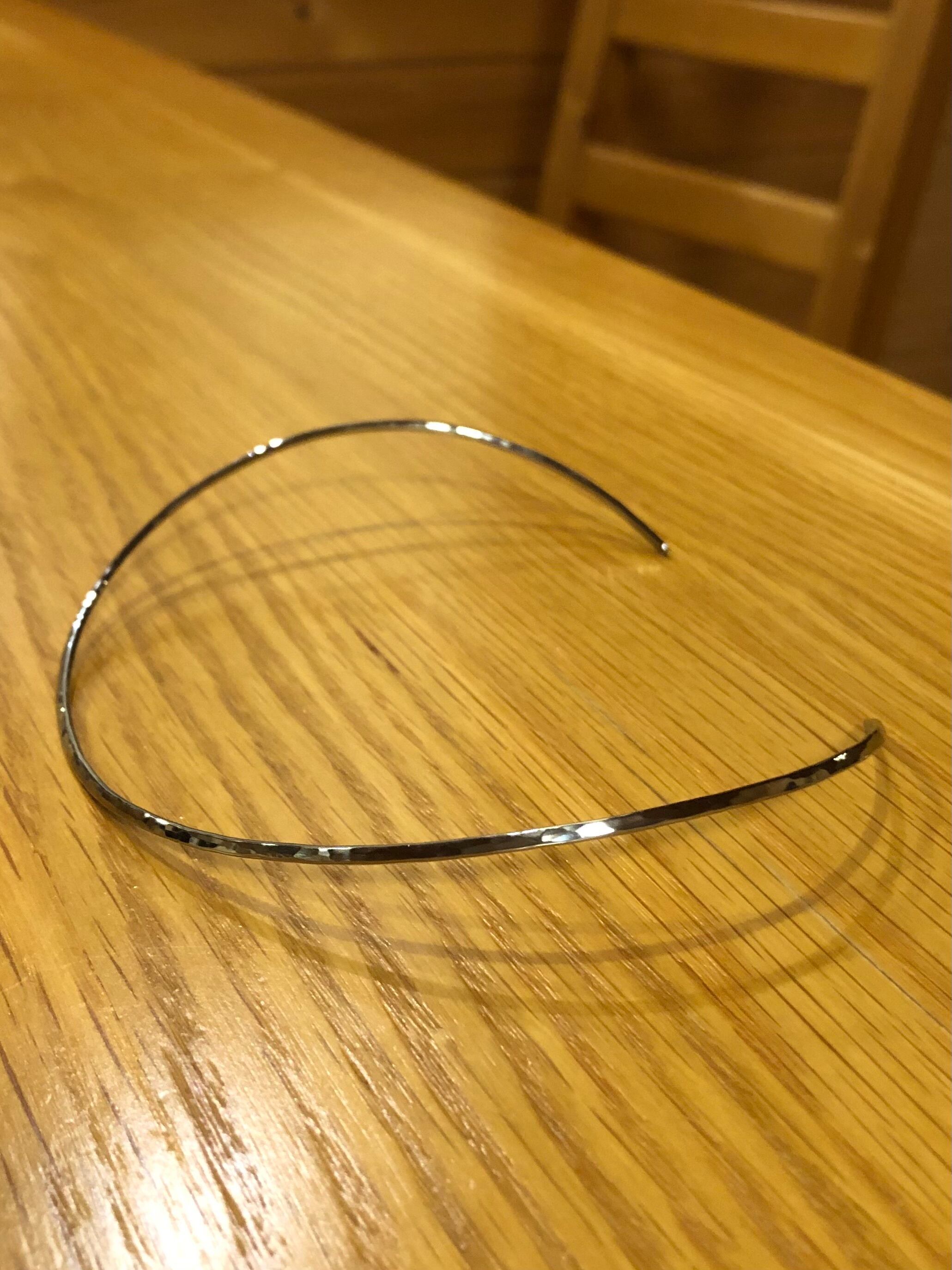 チタンで製作したネックカフ、表面だけ鎚目を入れたさりげなくキラキラが楽しめます。