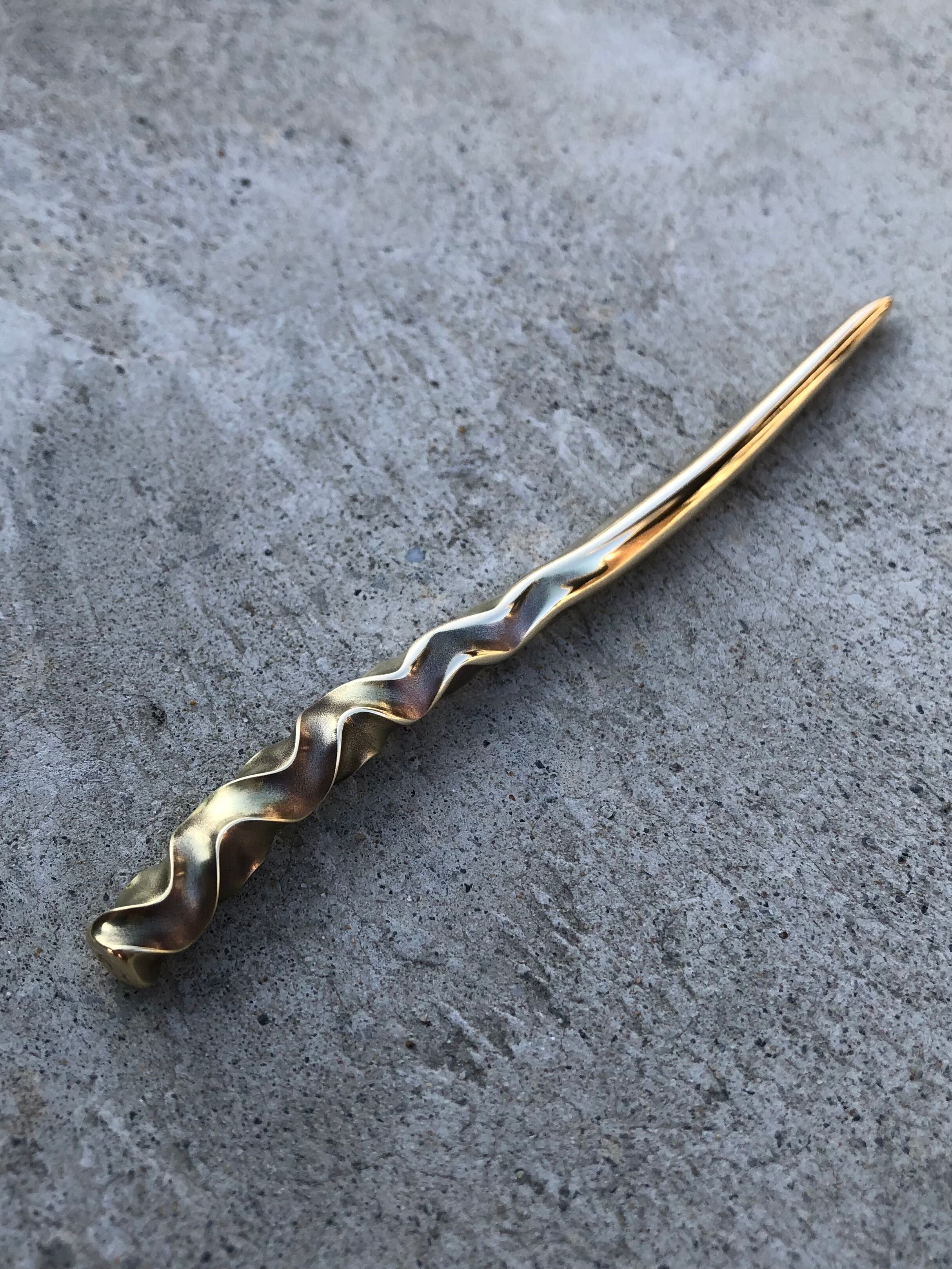 brass curved pattern hair stick large ショート簪 かんざし ヘアスティック