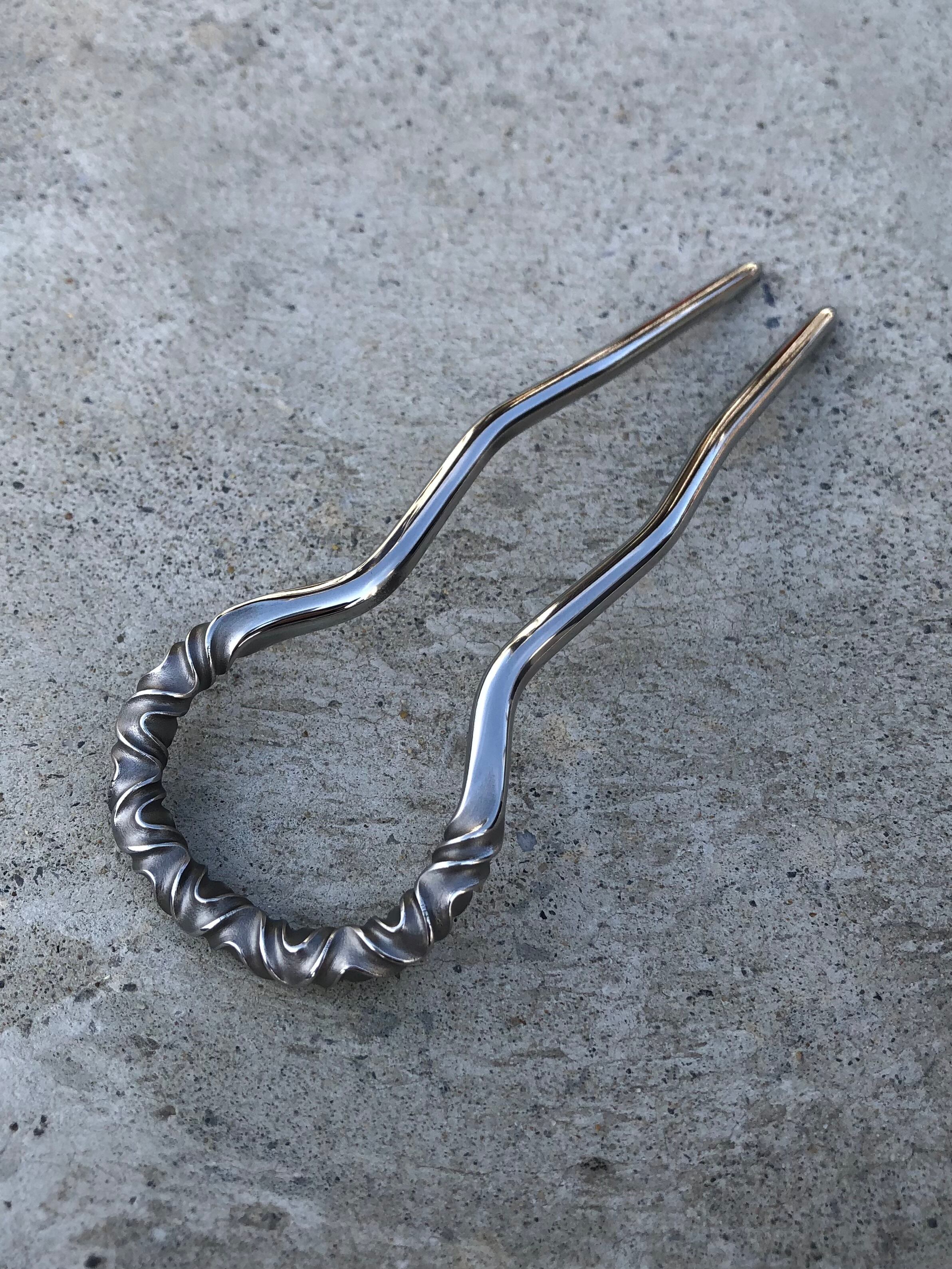 stainless curved pattern hair stick large かんざし ヘアスティックロングヘアー