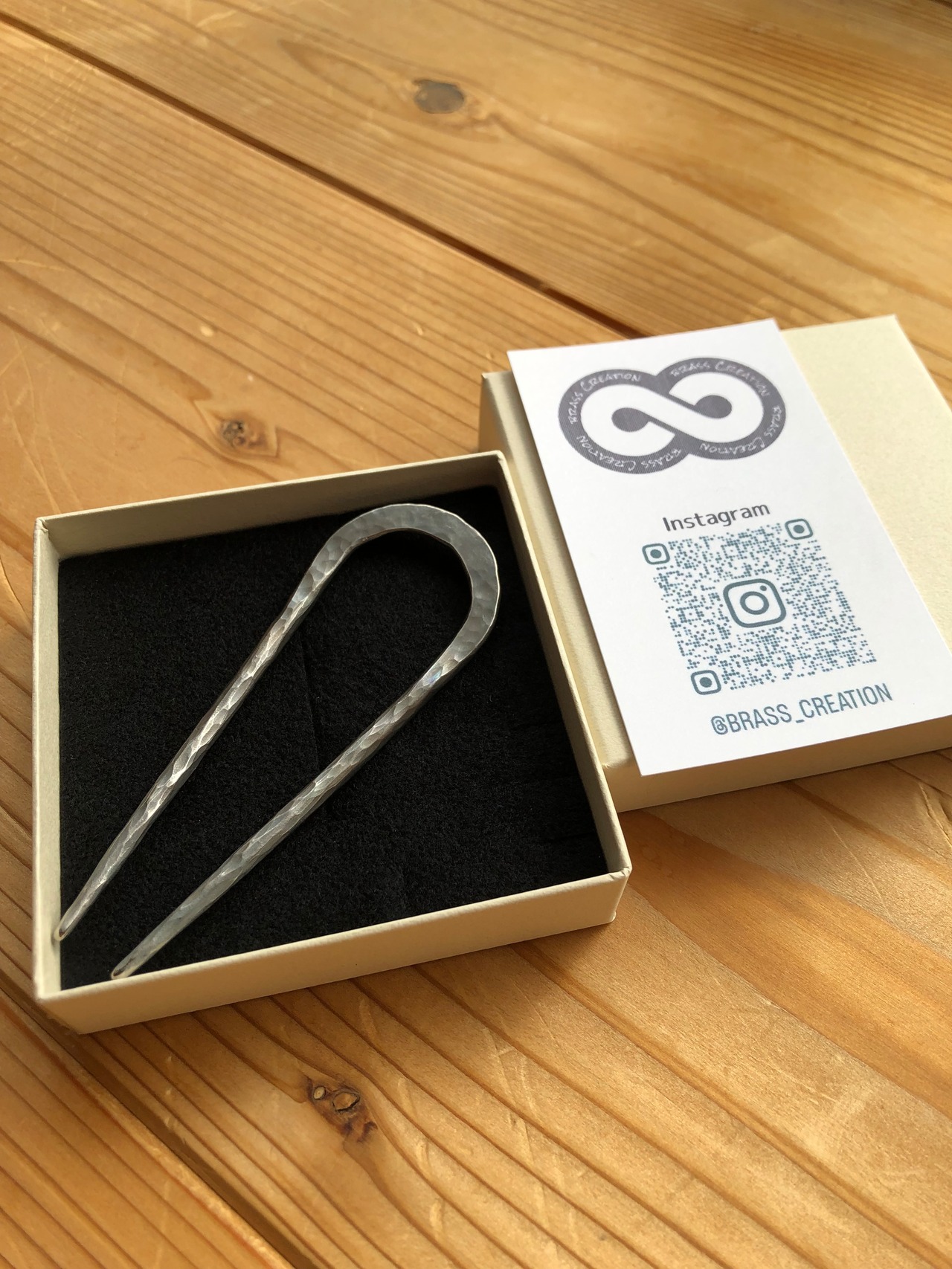 チタンを火とハンマーで岩から作りだしたをイメージして製作し一本刺しは頑丈で軽量とにかく軽いのでつけていても疲れません。先端から後部にかけてテーパー状に設計してありますのでシンプルだけど何処か主張してる岩シリーズは大人の女性にピッタリのヘアアイテムです。所々、色んな色がさりげなく出ている手作りだからこその温かみを味わって下さい。
