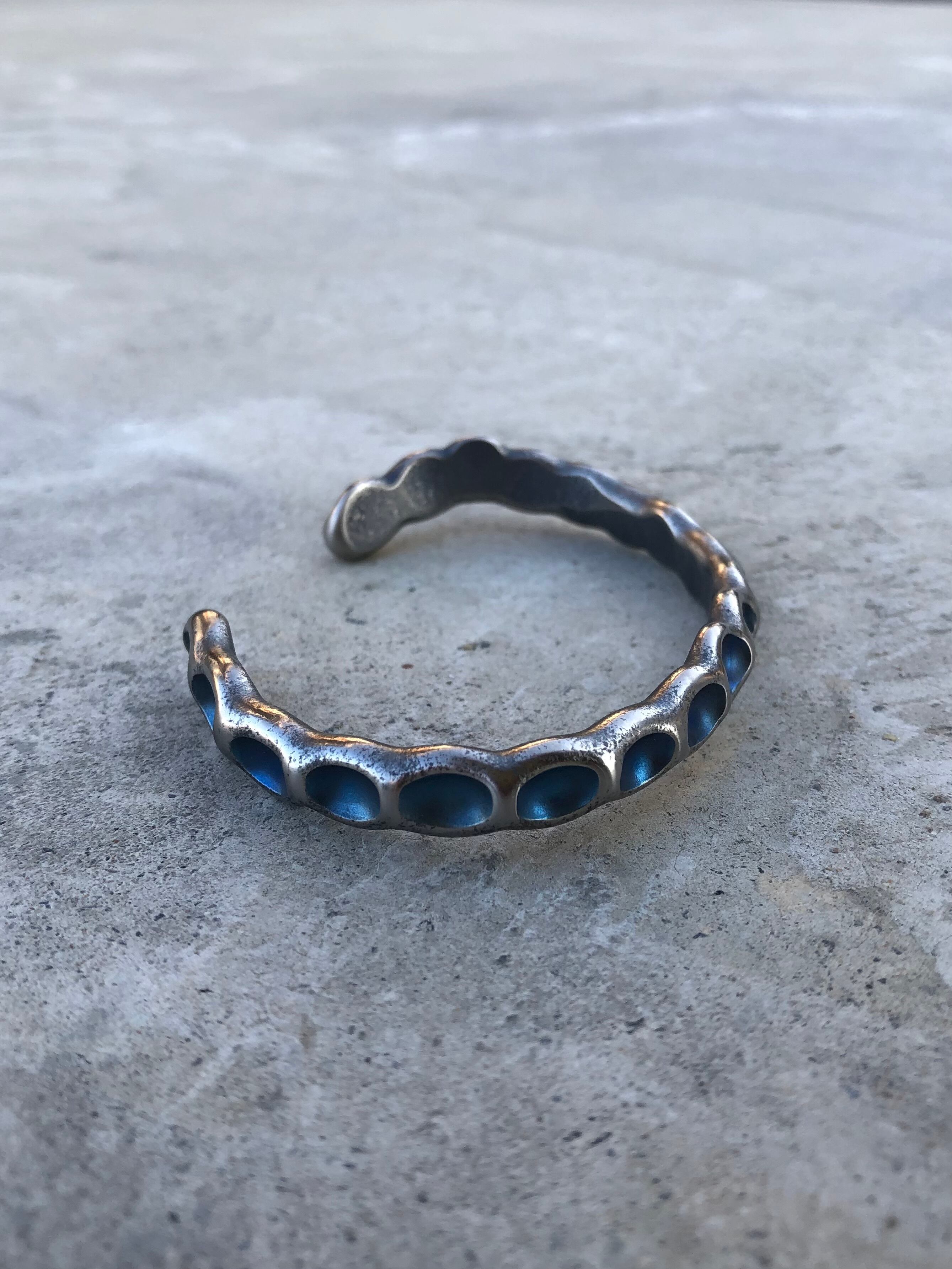 チタンを火とハンマーで製作したバングル。