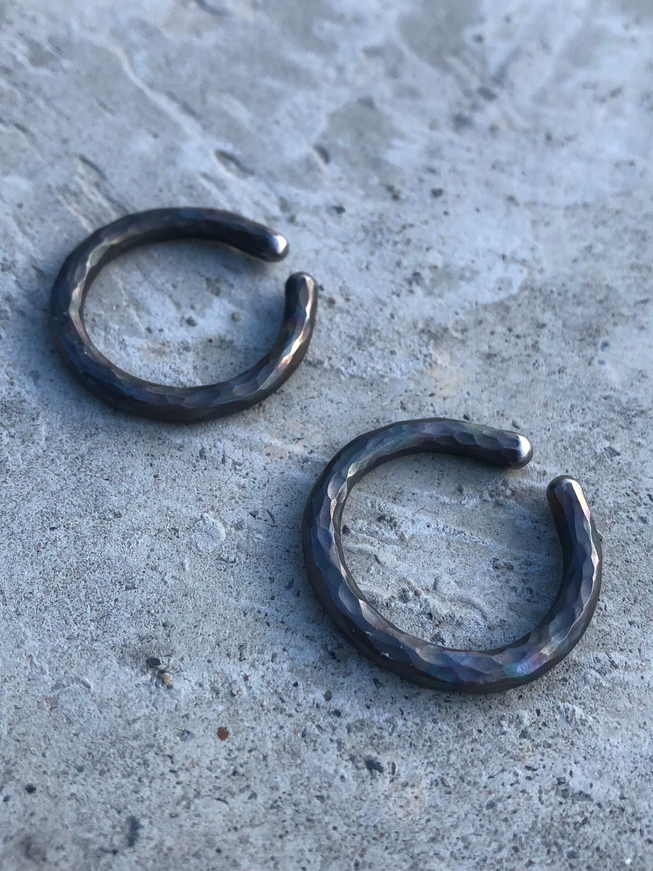 ロックシリーズ、岩リングのイヤーカフは岩の様な質感の中にさりげなく色んな色が出ているのが特徴。