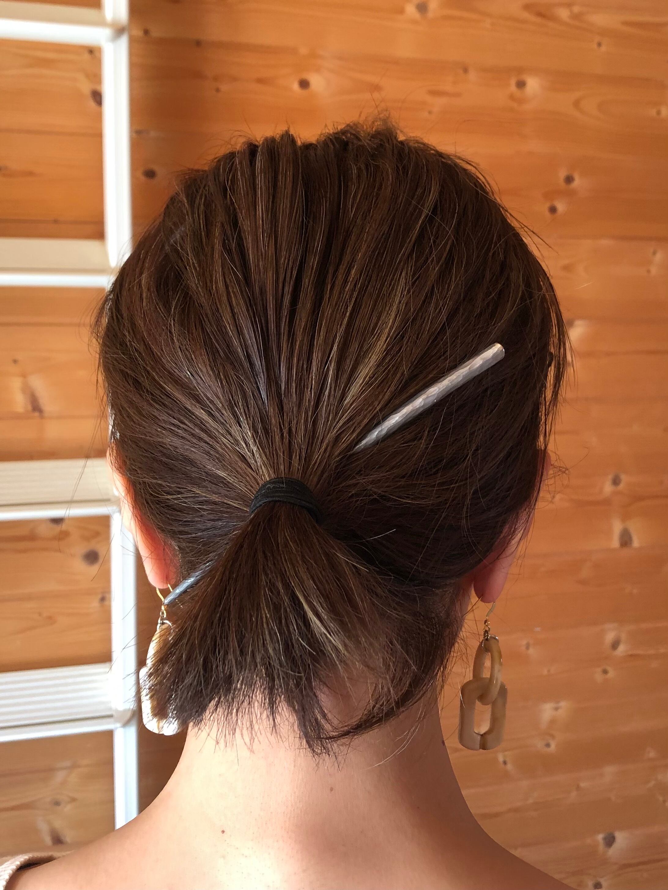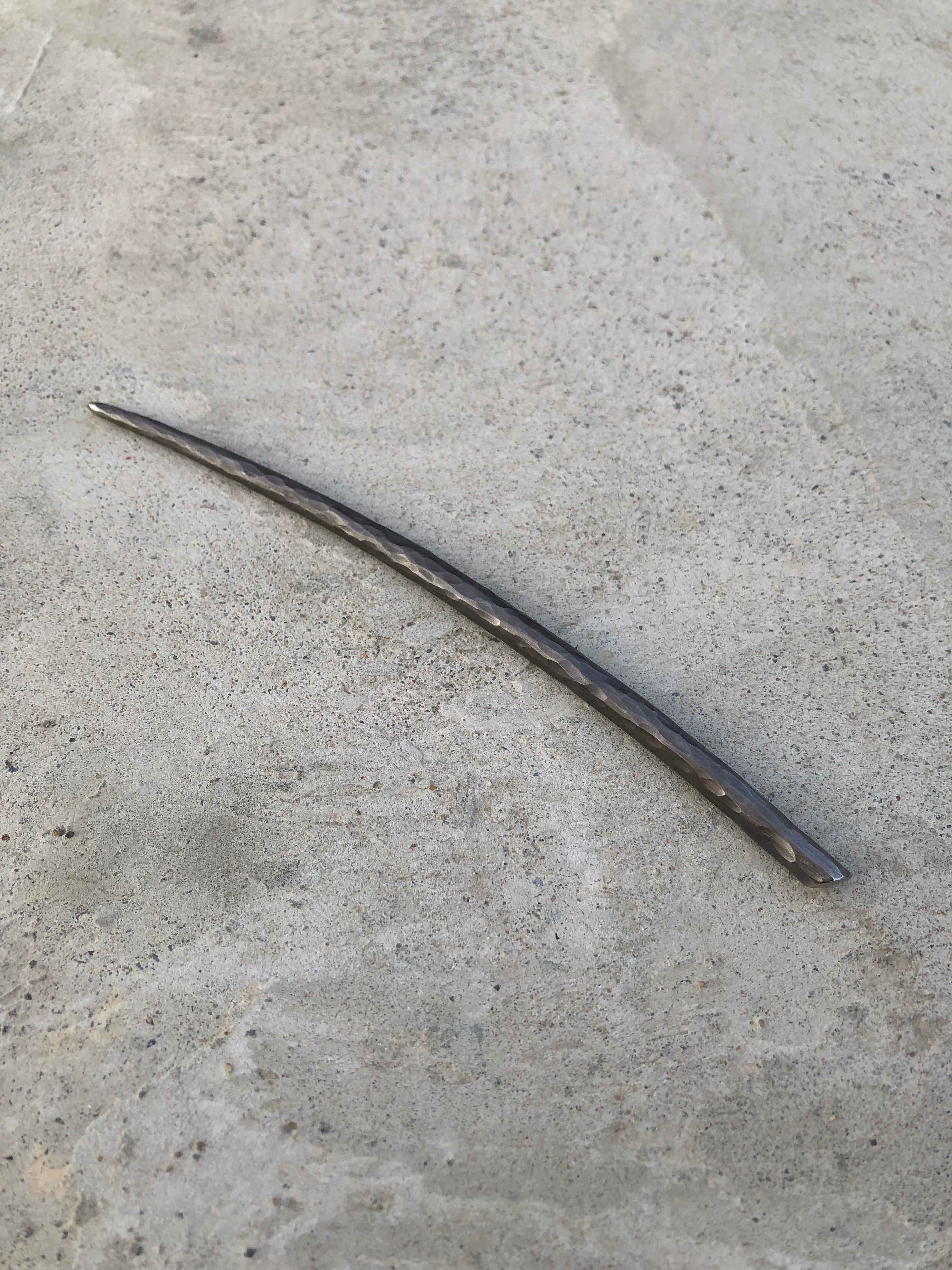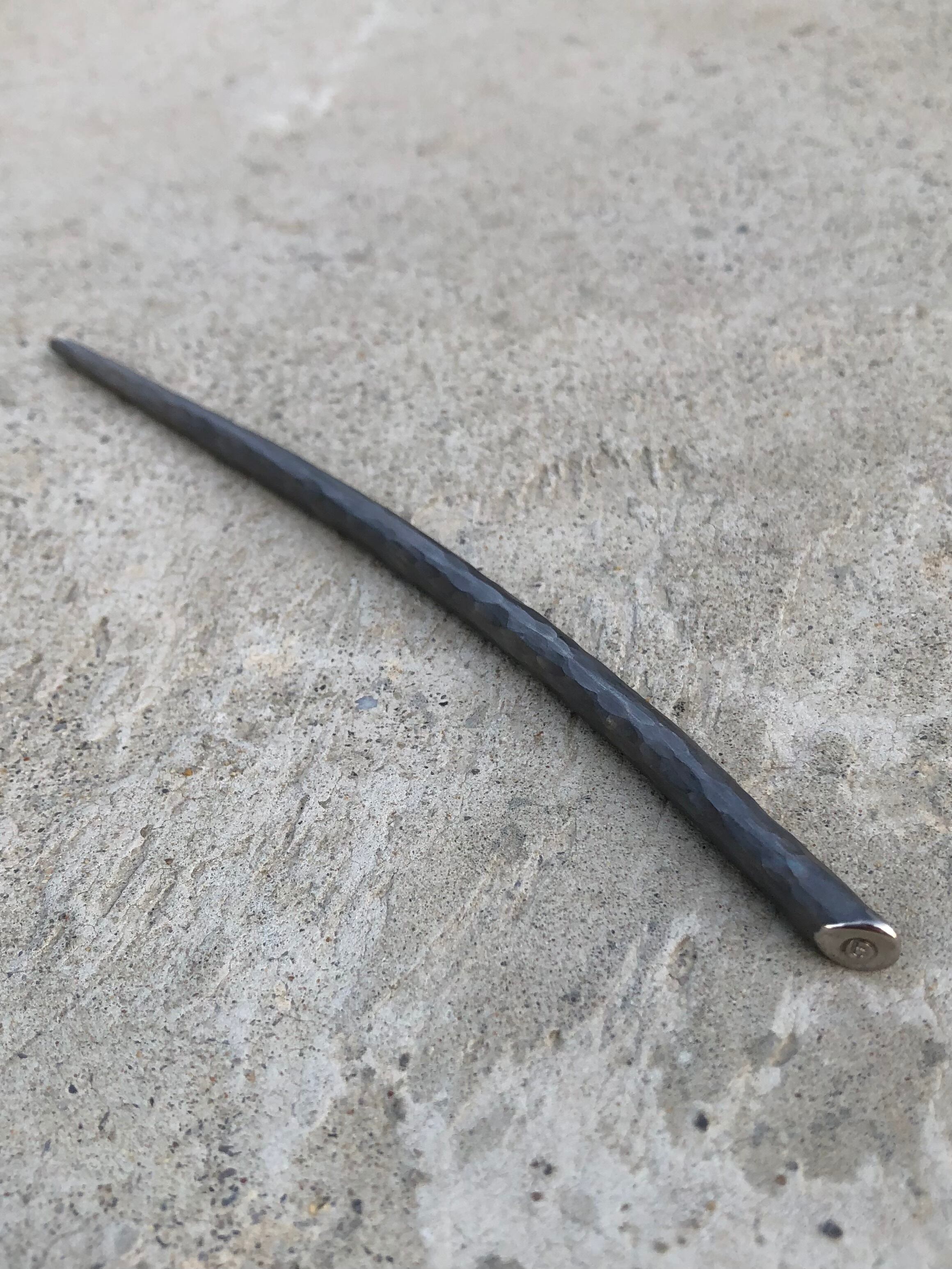 チタンを火とハンマーで岩から作りだしたをイメージして製作した一本挿しの簪は頑丈で軽量とにかく軽いのでつけていても疲れません。先端から後部にかけてテーパー状に設計し軽くカーブをかけております、。シンプルだけど何処か主張してる岩シリーズは大人の女性にピッタリのヘアアイテムです。所々、色んな色がさりげなく出ている手作りだからこその温かみを味わって下さい。